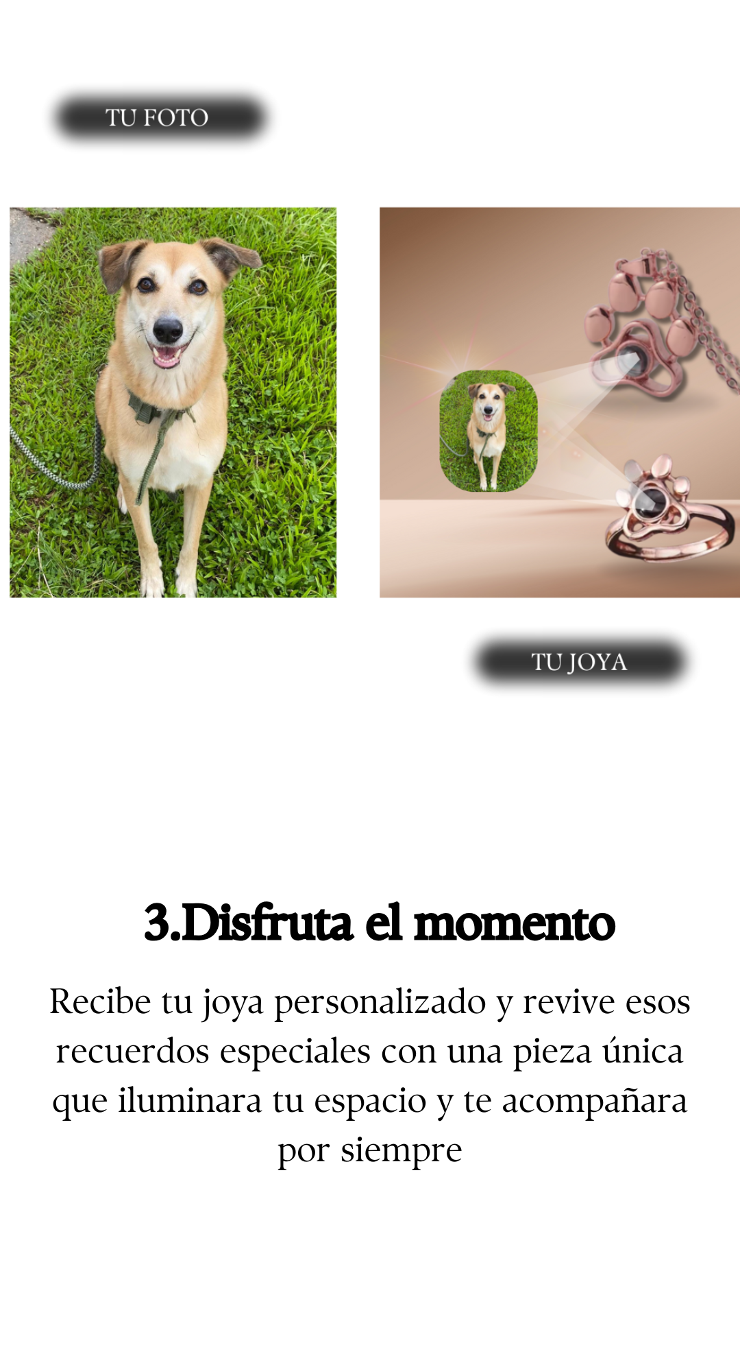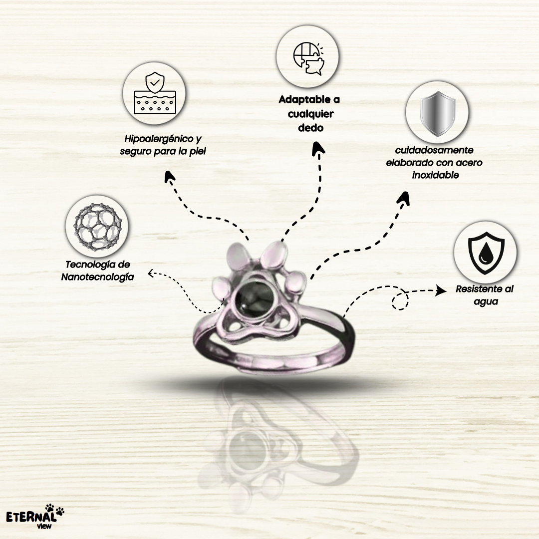 No importa si estas en casa, en tu trabajo o de viaje. Solo necesitas este anillo para llevar y ver a tu mascota en cualquier parte. Proyección HD, Acero inoxidable- Tu eliges donde llevar tu recuerdo